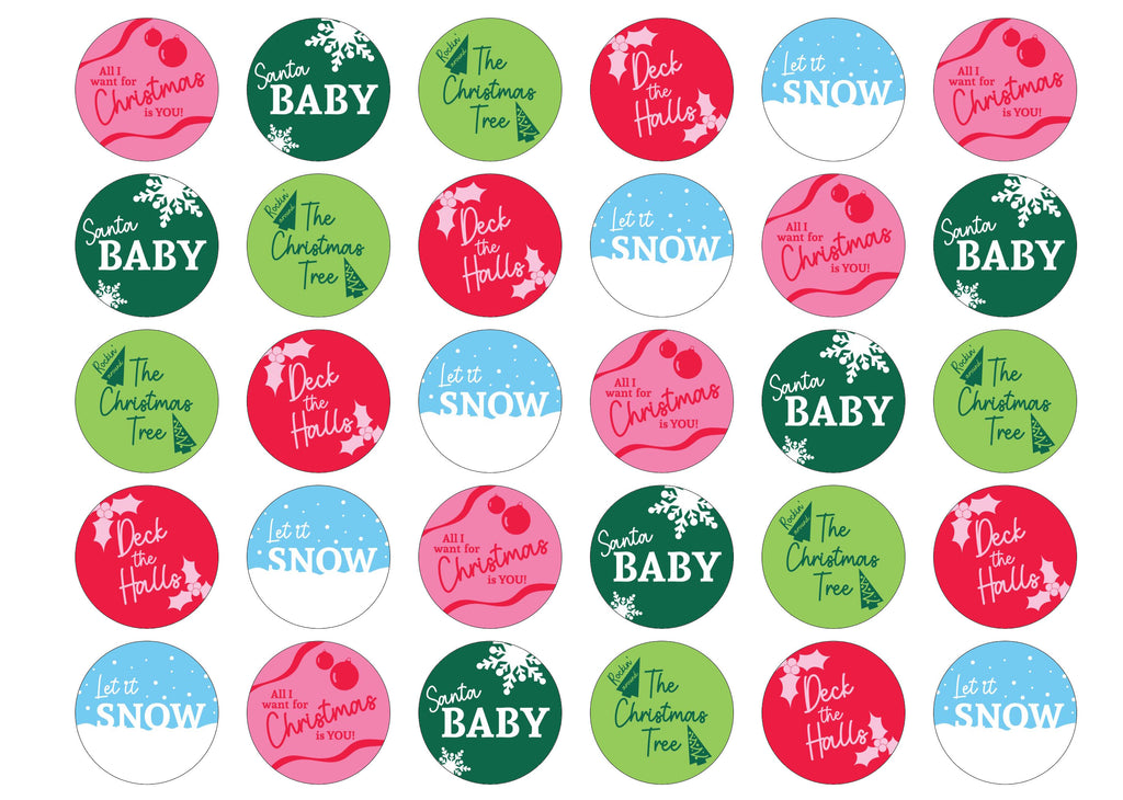 A range of pre-designed toppers with different Christmas Lyrics, including All I want for Christmas is you, Santa baby, Rockin' around the Christmas tree, Deck the halls and Let it snow. Toppers can be printed in a range of sizes and are available in a choice of three paper types. All products are 100% edible and easy to use.