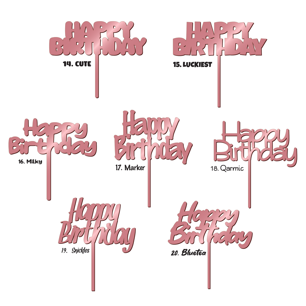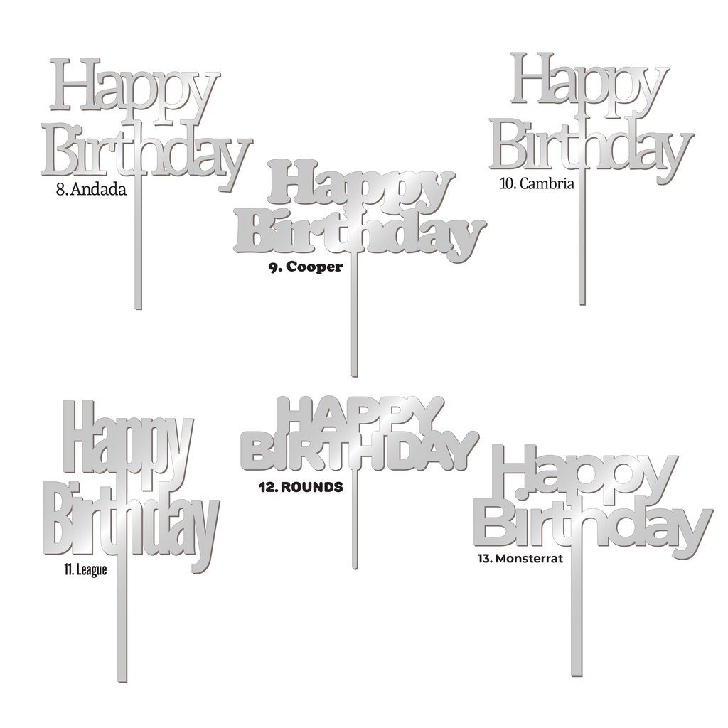 Our acrylic Happy Birthday cake topper is available in various colours and font styles. This listing is for our standard "Happy Birthday" design, if you would like a personalised design or a name/age added, please get in touch to discuss or have a look at some of our other listings.