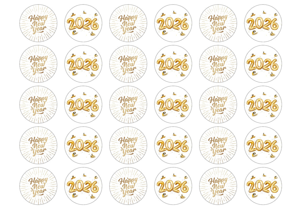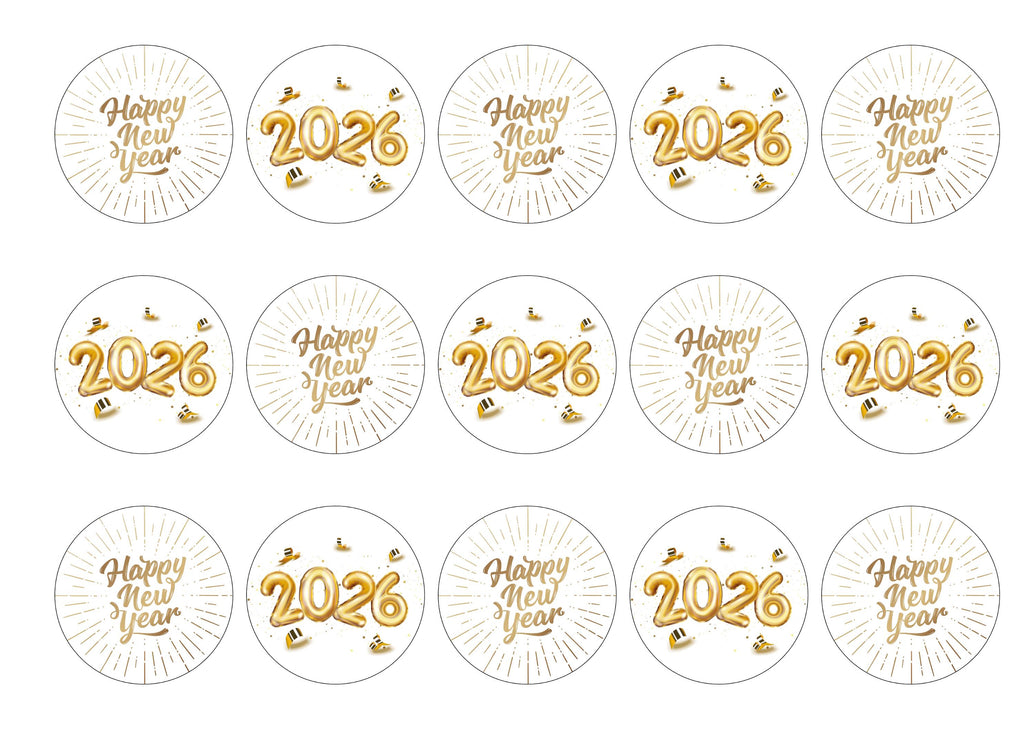 A range of pre-designed toppers especially for 2026 to bring in the New Year in gold colours with a message and 2026 balloons. They are printed in a range of sizes, available in a choice of three paper types. All products are 100% edible and easy to use.